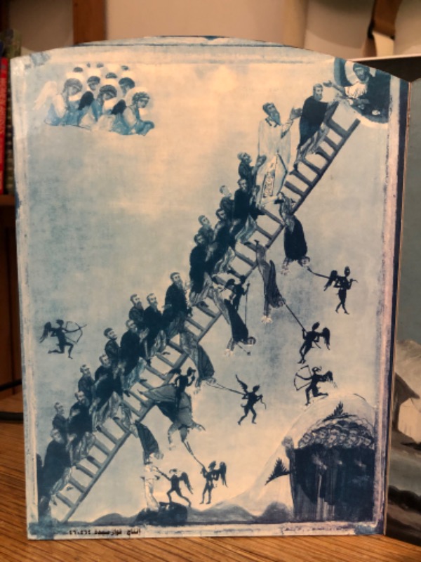 It just made me laugh, a thought of “reversing the stack” and kind of going backwards and back to the market place and that recent icon I’ve posted , John’s Ladder I think it’s called, where I see my self trying to walk down the ladder where all are trying to push upwards. There is a commotion on the ladder as I’m passing downwards saying “sorry, excuse me, sorry, sorry, it’s just me passing, oops sorry for stepping on your toe dear sir, carry on carry on, …”